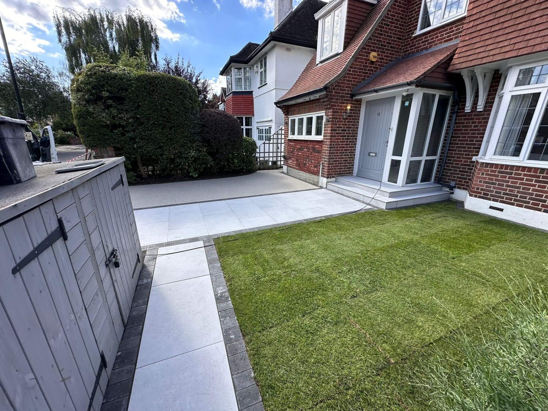 Resin, Porcelain and Turf Driveway in Richmond