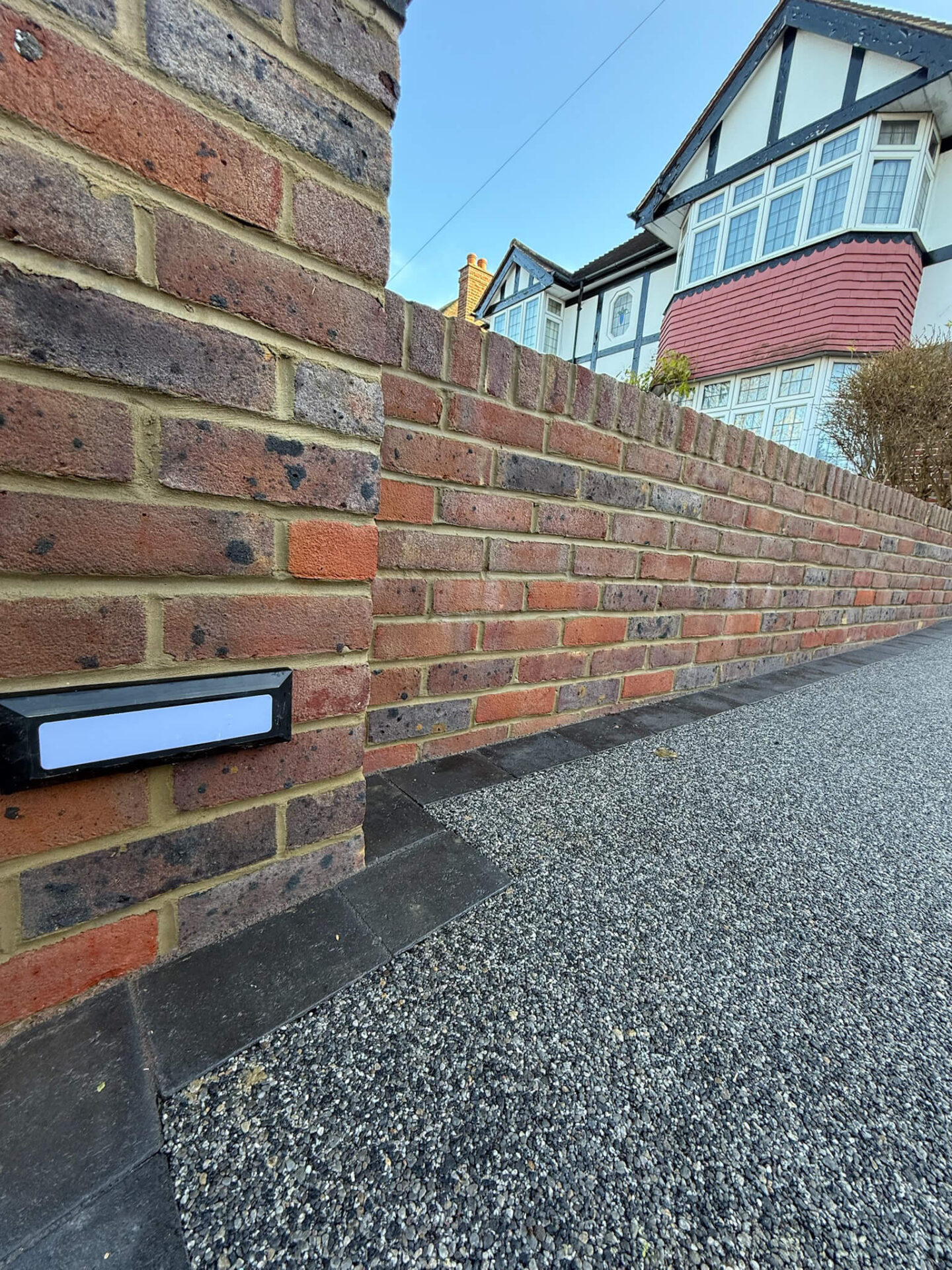 We delivered a new permeable and maintenance-free driveway that was installed to the highest standard, ensuring both durability and practicality. The brick walling and piers have been carefully constructed using bricks that match your home, maintaining a seamless and cohesive look. Additionally, the resin colour was chosen to complement their property, enhancing its overall aesthetic.